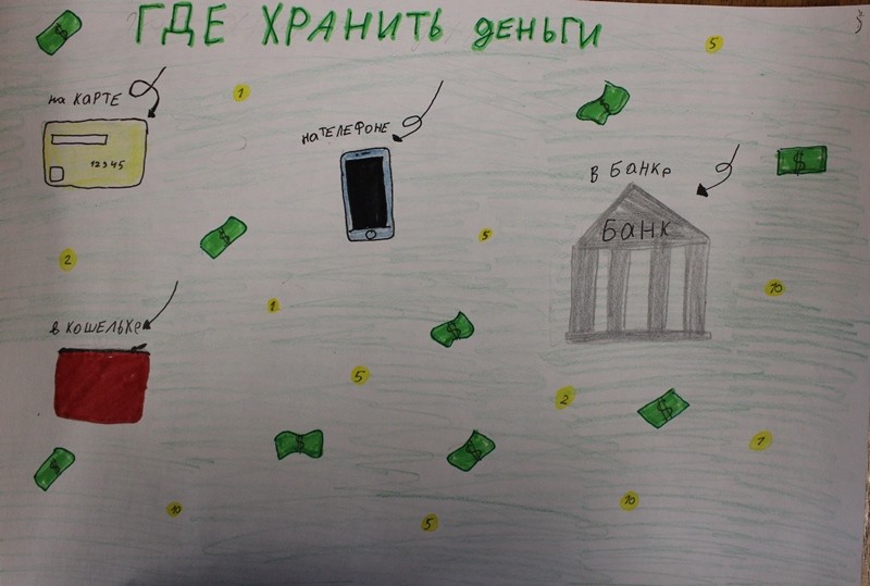 конкурс рисунков «Финансовая грамотность в рисунках». Учащиеся рисовали всё о деньгах: на что я коплю деньги, что можно купить за деньги, где лучше хранить деньги, откуда берутся деньги, кто даёт тебе деньги и деньги стран мира.